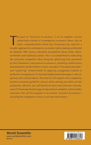 The goal of "Inclusive Economics" is to tie together various authoritative strands of contemporary economic theory into an easily comprehensible whole that illuminates the need for a broader approach to contemporary economic policymaking undistorted by obsolete 18th century rationalist assumptions about utility, ethics, worthiness and traditional culture. This is accomplished by elaborating the rationalist competitive ideal along the optimizing lines pioneered by Paul Samuelson (neoclassical economics); plumbing modifications necessitated by Herbert Simon's realist concepts of "bounded rationality" and "satisficing"; refined further by applying a pragmatist outlook to probe the consequences of relaxing Enlightenment teleological, ethical, spiritual and cultural taboos. The exercise will explain why competitive market economies guided by rational utility-seeking invariably are less productive, efficient, just and beneficent than most theorists concede, and will illuminate the full range of interventions needed to achieve better outcomes. We call this program in its entirety "Inclusive Economics," including the integration of micro and macroeconomics.