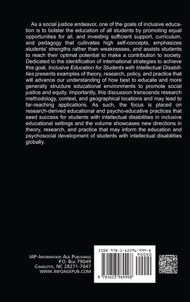 A volume in International Advances in Education: Global Initiatives for Equity and Social Justice Series Editors: Elinor L. Brown, University of Kentucky, Rhonda G. Craven, Australian Catholic University, and George F. McLean, The Council for Research in Values and Philosophy As a social justice endeavor, one of the goals of inclusive education is to bolster the education of all students by promoting equal opportunities for all, and investing sufficient support, curriculum and pedagogy that cultivates high self-concepts, emphasizes students' strengths rather than weaknesses, and assists students to reach their optimal potential to make a contribution to society. Dedicated to the identification of international strategies to achieve this goal, Inclusive Education for Students with Intellectual Disabilities presents examples of theory, research, policy, and practice that will advance our understanding of how best to educate and more generally structure educational environments to promote social justice and equity. Importantly, this discussion transcends research methodology, context, and geographical locations and may lead to far-reaching applications. As such, the focus is placed on research-derived educational and psycho-educative practices that seed success for students with intellectual disabilities in inclusive educational settings and the volume showcases new directions in theory, research, and practice that may inform the education and psychosocial development of students with intellectual disabilities globally. The chapter contributors in this volume consist of 31 scholars from ten different countries, and they come from a great variety of research areas (i.e., teacher education, educational psychology, special education and disability policy, special needs and inclusive education, health sciences). This volume, with a series of subsections, offers insights and useful strategies to promote meaningful advances for students with intellectual disabilities globally.