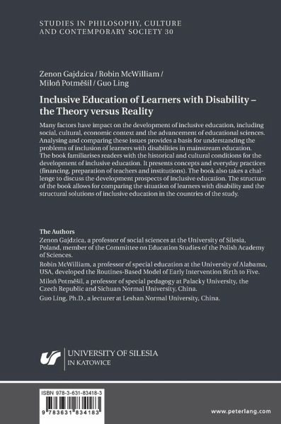 Many factors have impact on the development of inclusive education, including social, cultural, economic context and the advancement of educational sciences. Analysing and comparing these issues provides a basis for understanding the problems of inclusion of learners with disabilities in mainstream education. The book familiarises readers with the historical and cultural conditions for the development of inclusive education. It presents concepts and everyday practices (financing, preparation of teachers and institutions). The book also takes a challenge to discuss the development prospects of inclusive education. The structure of the book allows for comparing the situation of learners with disability and the structural solutions of inclusive education in the countries of the study.