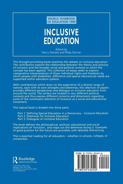 This volume provides overviews and approaches to inclusive education from around the world. It defines the philosophical, political, educational and social implications of "inclusion", and maps out the dilemmas facing its successful implementation.
