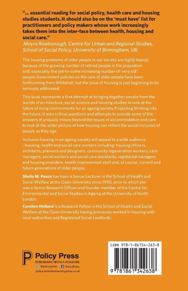 This book is the first to bring together people from the worlds of architecture, social science and housing studies to look at the future of living environments for an ageing society. It uniquely moves beyond the issues of accommodation and care to look at the wider picture of how housing can reflect the social inclusion of people as they age.
