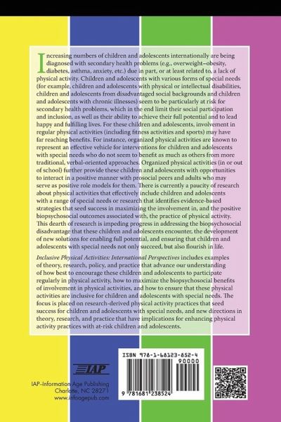 Increasing numbers of children and adolescents internationally are being diagnosed with secondary health problems (e.g., overweight-obesity, diabetes, asthma, anxiety, etc.) due in part, or at least related to, a lack of physical activity. Children and adolescents with various forms of special needs (for example, children and adolescents with physical or intellectual disabilities, children and adolescents from disadvantaged social backgrounds and children and adolescents with chronic illnesses) seem to be particularly at risk for secondary health problems, which in the end limit their social participation and inclusion, as well as their ability to achieve their full potential and to lead happy and fulfilling lives. For these children and adolescents, involvement in regular physical activities (including fitness activities and sports) may have far reaching benefits. For instance, organized physical activities are known to represent an effective vehicle for interventions for children and adolescents with special needs who do not seem to benefit as much as others from more traditional, verbal-oriented approaches. Organized physical activities (in or out of school) further provide these children and adolescents with opportunities to interact in a positive manner with prosocial peers and adults who may serve as positive role models for them. There is currently a paucity of research about physical activities that effectively include children and adolescents with a range of special needs or research that identifies evidence-based strategies that seed success in maximizing the involvement in, and the positive biopsychosocial outcomes associated with, the practice of physical activity. This dearth of research is impeding progress in addressing the biopsychosocial disadvantage that these children and adolescents encounter, the development of new solutions for enabling full potential, and ensuring that children and adolescents with special needs not only succeed, but also flourish in life. This volume includes examples of theory, research, policy, and practice that will advance our understanding of how best to encourage these children and adolescents to participate regularly in physical activity, how to maximize the biopsychosocial benefits of involvement in physical activities, and how to ensure that these physical activities are inclusive for children and adolescents with special needs. The focus will be placed on research-derived physical activity practices that seed success for children and adolescents with special needs, and new directions in theory, research, and practice that have implications for enhancing physical activity practices with at-risk children and adolescents. The themes covered in this volume include: ¿ Strategies to maximise participation of children and adolescents with special needs in physical activity as a global priority; ¿ Strategies to maximise the social inclusion of children and adolescents with special needs in general physical activities; ¿ Effective physical education strategies to enhance biopsychosocial outcomes for children and adolescents with special needs; ¿ Advancing the practice of educators and coaches to cultivate the social inclusion and participation in physical activity of children and adolescents with special needs; and ¿ Challenging the meaning and implementation of inclusive practices in physical education globally.