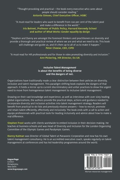 "Diversity is not separate from Talent, it is Talent. With their brilliant book, Stephen Frost and Danny Kalman enable us to walk the talk. A must-read for leaders who want to benefit from 100 percent of the talent pool and make a difference in the world." Iris Bohnet, Professor of Public Policy, Harvard Kennedy School, and author of What Works: Gender Equality By Design