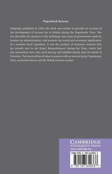 Originally published in 1939, this book was written to provide an account of the development of income tax in Britain during the Napoleonic Wars. The text describes the advance in the technique and scope of government made by income tax administration, and assesses the social and economic significance of a wartime fiscal expedient. It was the product of extensive research into tax records sent to the King's Remembrancer during the Wars, which had lain untouched since they were tied up and labelled shortly after the Battle of Waterloo. This book will be of value to anyone with an interest in the Napoleonic Wars, economic history and the British taxation system.