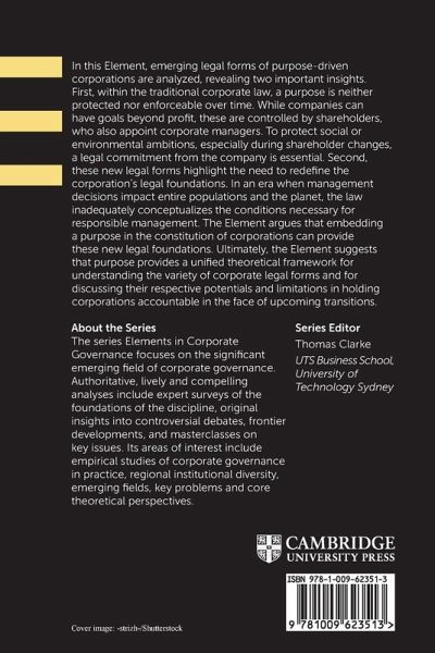 In this Element, we analyze emerging legal forms of purpose-driven corporations, revealing two insights. First, within the traditional corporate law, a purpose is neither protected nor credible over time. Second, these frameworks highlight the need for new legal foundations of the corporation. Purpose provides a unified theoretical framework.
