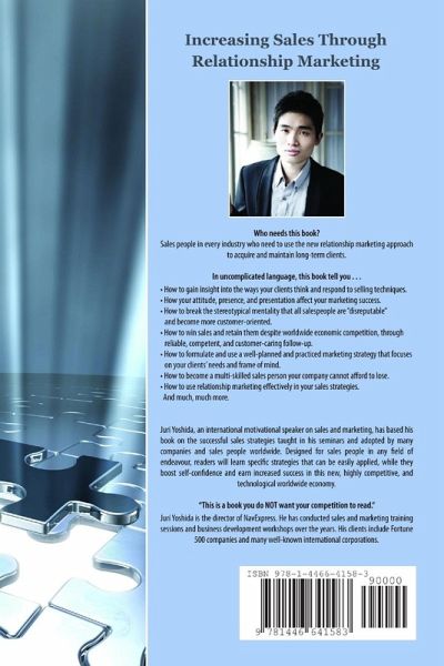 A Must have book for all sales and business people who would like to increase sales, retain customers, build long term solid relationships with their clients.
