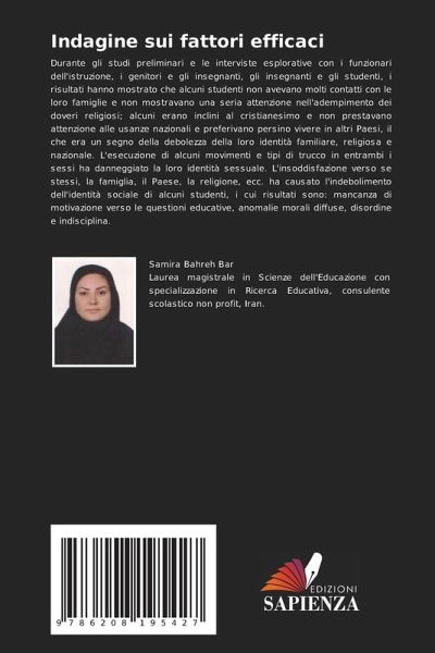 Durante gli studi preliminari e le interviste esplorative con i funzionari dell'istruzione, i genitori e gli insegnanti, gli insegnanti e gli studenti, i risultati hanno mostrato che alcuni studenti non avevano molti contatti con le loro famiglie e non mostravano una seria attenzione nell'adempimento dei doveri religiosi; alcuni erano inclini al cristianesimo e non prestavano attenzione alle usanze nazionali e preferivano persino vivere in altri Paesi, il che era un segno della debolezza della loro identità familiare, religiosa e nazionale. L'esecuzione di alcuni movimenti e tipi di trucco in entrambi i sessi ha danneggiato la loro identità sessuale. L'insoddisfazione verso se stessi, la famiglia, il Paese, la religione, ecc. ha causato l'indebolimento dell'identità sociale di alcuni studenti, i cui risultati sono: mancanza di motivazione verso le questioni educative, anomalie morali diffuse, disordine e indisciplina.