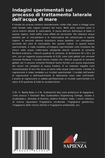 Il mondo ha un'area costiera considerevole; molte città, paesi e villaggi sono stati fondati nelle regioni costiere del mare. Nelle zone costiere sono in corso enormi attività di costruzione. A causa dell'uso dell'acqua di falda in queste regioni, molti edifici sono affetti da corrosione. Per ottenere acqua potabile per la miscelazione e la maturazione del calcestruzzo in queste regioni, le persone devono acquistare acqua potabile, con conseguente aumento dei costi di costruzione. Per questo motivo, in questo lavoro sperimentale, è stata condotta un'indagine sperimentale sulla rimozione dei cloruri nelle acque sotterranee utilizzando blocchi quadrati di cemento Portland ordinario. I blocchi quadrati di cemento, di dimensioni 50 x 50 x 10 mm, con un rapporto acqua-cemento di 0,28, sono stati gettati con normale cemento Portland. I risultati hanno rivelato che i blocchi quadrati di cemento gettati con il comune cemento Portland hanno fornito una buona espulsione dei cloruri nei campioni di acqua freatica. E un notevole impatto sulla concentrazione di ioni che sono un dono nelle acque sotterranee. L'analisi di regressione è stata condotta sui risultati sperimentali. I risultati dell'analisi di regressione e dell'esperimento di laboratorio sono stati confrontati. L'analisi di regressione si adatta perfettamente ai risultati sperimentali e ai valori di R quadrato di tutte le caratteristiche.