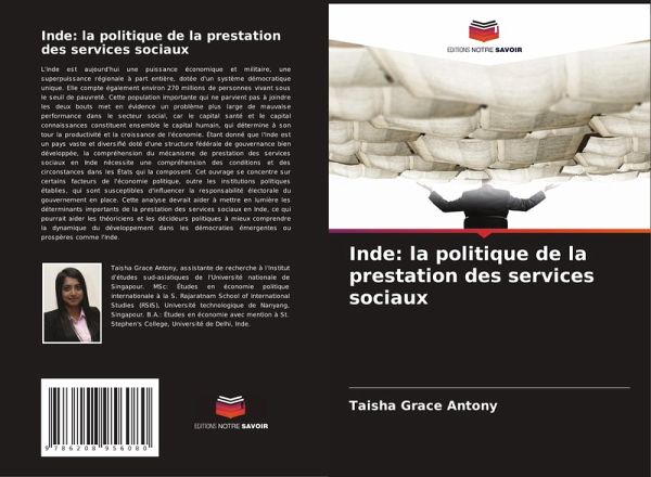 L'Inde est aujourd'hui une puissance économique et militaire, une superpuissance régionale à part entière, dotée d'un système démocratique unique. Elle compte également environ 270 millions de personnes vivant sous le seuil de pauvreté. Cette population importante qui ne parvient pas à joindre les deux bouts met en évidence un problème plus large de mauvaise performance dans le secteur social, car le capital santé et le capital connaissances constituent ensemble le capital humain, qui détermine à son tour la productivité et la croissance de l'économie. Étant donné que l'Inde est un pays vaste et diversifié doté d'une structure fédérale de gouvernance bien développée, la compréhension du mécanisme de prestation des services sociaux en Inde nécessite une compréhension des conditions et des circonstances dans les États qui la composent. Cet ouvrage se concentre sur certains facteurs de l'économie politique, outre les institutions politiques établies, qui sont susceptibles d'influencer la responsabilité électorale du gouvernement en place. Cette analyse devrait aider à mettre en lumière les déterminants importants de la prestation des services sociaux en Inde, ce qui pourrait aider les théoriciens et les décideurs politiques à mieux comprendre la dynamique du développement dans les démocraties émergentes ou prospères comme l'Inde.