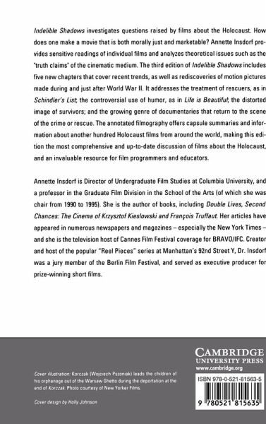 Part I. Finding an Appropriate Language: 1. The Hollywood version of the Holocaust; 2. Meaningful montage; 3. Styles of tension; 4. Black humor; Part II. Narrative Strategies: 5. The Jew as child; 6. In hiding/onstage; 7. Beautiful evasions?; 8. The condemned and doomed; Part III. Responses to Nazi Atrocity: 9. Political resistance; 10. The ambiguity of identity; 11. The new German guilt; Part IV. Shaping Reality: 12. The personal documentary; 13. From judgment to illumination; Part V. Third Edition Update: 14. The Holocaust as genre; 15. Rediscoveries; 16. Rescuers in fiction films; 17. The ironic touch; 18. Dysfunction as distortion: the Holocaust survivor on screen and stage; 19. Documentaries of return.