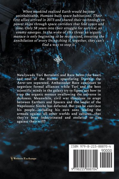 Tori Bertoletti, librarian and planet cataloger, and Raze Salen, mankind's emissary, aboard the Human spacefaring liveship the Aero have succeeded in creating a Galactic Alliance with other cultures in their universe in order to protect themselves from an adversary who considers itself the supreme race, the Chosen of the Creator. Cultures that at one time would have considered all others antithetical to their own no longer have a choice about facing the indisputable fact that, though they've all come from different planets and far-flung sectors of the galaxy, they are genetically one and the same. But can the enemy of my enemy become my friend against the warring Sinshe...as well as an organic process that won't be stopped until all life to the farthest corners of the universe ceases to exist and only darkness reigns?