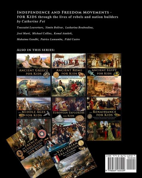 "Your country is an altar, not a pedestal," said José Martí. As we explore the whirlwinds of liberation movements around the world, my hope for this book is that it will prompt our kids to think about the value of civic commitment - the fact that our freedoms come at the cost of sacrifice - not only by previous generations, but also by every one of us. The heroes of this book are Toussaint Louverture (Haiti), Simón Bolívar (Latin America), Laskarina Bouboulina (Greece), José Martí (Cuba), Michael Collins (Ireland), Kemal Atatürk (Turkey), Mahatma Gandhi (India), Patrice Lumumba (Congo), and Fidel Castro (Cuba). The liberation movements they represent include anti-colonial and anti-slavery movements, anti-imperial wars of independence, as well as anti-monarchy and anti-dictatorship campaigns. Many of these fighters are controversial figures - viewed as heroes and liberators by some and as terrorists or war criminals by others. Without taking sides, we'll go through their stories, read testimonies of their contemporaries and biographers, smile at historical anecdotes about them, and try to see the real people behind the legends they have each become. As in other books of this series, we follow the traditional, 'heritage history' route of presenting historical events - history through the twists and turns of human lives, through their triumphs and disappointments, as opposed to the 'social studies' approach. And yet, I hope that through these histories of liberation movements and their fighters, my readers will be able to see the bigger picture and make their own conclusions about the unstoppable currents that make history happen. There are many parallels among liberation movements around the world that the reader will notice and reflect upon. For example, - What does it take for a freedom / independence movement to succeed? - Why do so many liberation movements end up in a civil war between different camps of freedom fighters? - Why do many freedom movement leaders end up betrayed or killed by their own comrades-in-arms? - What actions make freedom fighters 'controversial' figures - loved by some and hated by others? - What do freedom fighters gain and what do they sacrifice?