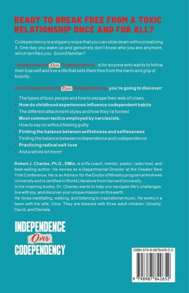 Do you want to find a way to live on your own terms and live your truth? Codependency is a slippery slope you can slide down without realizing it. One day you wake up and genuinely don't know who you are anymore, and that terrifies you. Sound familiar? Honestly, that's okay. By stepping forward and speaking up for yourself internally, you're taking the biggest, most important step of the journey. From here on in, you'll be supported and guided in a truly personal and authentic way. That's if only you had the right guide... ...but you CAN get it faster than you can believe if you invest just two minutes of your life reading to the button on this page. How do I know? I've already read that very same guide from cover to cover! "Independence Over Codependency" is for anyone who wants to follow their true self and live a life that sets them free from the harm and grip of toxicity. Inside Independence Over Codependency, you're going to learn about:What a codependent relationship looks like Why put an end to codependency How childhood experiences influence codependent habits The different attachment styles and how they're formed How to know when you're being abused Most common tactics employed by narcissists How to put an end to toxic relationships How to say no without feeling guilty Finding the balance between selfishness and selflessness How to be more assertive Tips for setting boundaries in your different relationships Finding the balance between independence and codependence Practicing radical self-love And a whole lot more!........... This step-by-step approach will allow you to achieve more than you ever thought possible, all while lightening your mental load in a way that truly will change the rest of your life. Take action and claim your copy NOW! Once you get it, you need to spend 5 minutes reading the first couple of pages. Why? Because that small bit of momentum you will unleash will build into an unstoppable avalanche of progress before you know it. Soon growing and working on yourself internally will become a daily habit, and once that happens, you will get your life back faster than you can believe. I know you can do this.