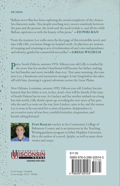 Paris, South Dakota, summer 1976. Fifteen-year-old Lilly is crushed by the news that her mother's boyfriend will become her father, making her feel lonelier and more invisible than ever. That same morning, she runs into Lee, a handsome and mysterious stranger. It isn't long before she takes off with him, deeming it a grand adventure across the Great Plains. New Orleans, Louisiana, autumn 1992. Fifteen-year-old Lindsey has just learned that her father is not, in fact, dead-but will be shortly if the state of South Dakota has its way. As she and her mother embark on a long bus ride north, Lilly slowly opens up, revealing to her daughter the true story of her past: why she and Lee went on the run, how Lindsey came to be, and the reason Lee is about to be executed for a crime of passion. Independence is an evocative story of true love, youthful mistakes, desperation, and breath-taking betrayal.