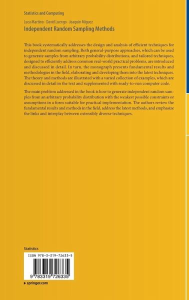 This book systematically addresses the design and analysis of efficient techniques for independent random sampling. Both general-purpose approaches, which can be used to generate samples from arbitrary probability distributions, and tailored techniques, designed to efficiently address common real-world practical problems, are introduced and discussed in detail. In turn, the monograph presents fundamental results and methodologies in the field, elaborating and developing them into the latest techniques. The theory and methods are illustrated with a varied collection of examples, which are discussed in detail in the text and supplemented with ready-to-run computer code.