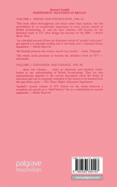 The third volume of this history of independent television in Britain focuses on the central issues facing the Authority and companies during twelve and a half eventful years between the beginning of a new contract period in July 1968 and the announcement of the successful applicants for new contracts in December 1980. For ITV these were years of recession and inflation, of expansion and prosperity - above all, of enquiry and uncertainty.
