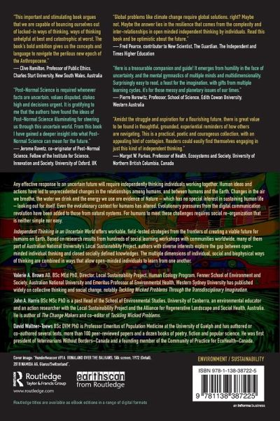 Any effective response to an uncertain future will require independently thinking individuals working together. Human ideas and actions have led to unprecedented changes in the relationships among humans, and between humans and the Earth. Changes in the air we breathe, the water we drink and the energy we use are evidence of Nature - which has no special interest in sustaining human life - looking out for itself. Even the evolutionary context for humans has altered. Evolutionary pressures from the digital communication revolution have been added to those from natural systems. For humans to meet these challenges requires social re-organisation that is neither simple nor easy. Independent Thinking in an Uncertain World explores workable, field-tested strategies from the frontiers of creating a viable future for humans on Earth. Based on research results from hundreds of social learning workshops with communities worldwide, many of them part of Australian National University's Local Sustainability Project, authors with diverse interests explore the gap between open-minded individual thinking and closed socially defined knowledges. The multiple dimensions of individual, social and biophysical ways of thinking are combined in ways that allow open-minded individuals to learn from one another.