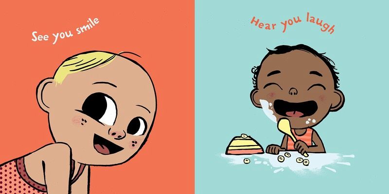 Waterproof, impossible to tear, easily washable, this cheerfully indestructible picture book celebrates new babies, from their arrival through the joys of watching them grow. Itâ s the perfect first gift for a newborn.
