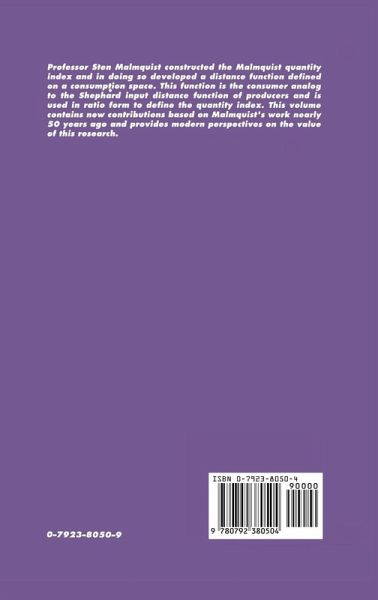 Professor Sten Malmquist constructed the Malmquist quantity index and in doing so developed a distance function defined on a consumption space. This function is the consumer analog to the Shephard input distance function of producers and is used in ratio form to define the quantity index. This volume contains new contributions based on Malmquist's work nearly 50 years ago and provides modern perspectives on the value of this research.
