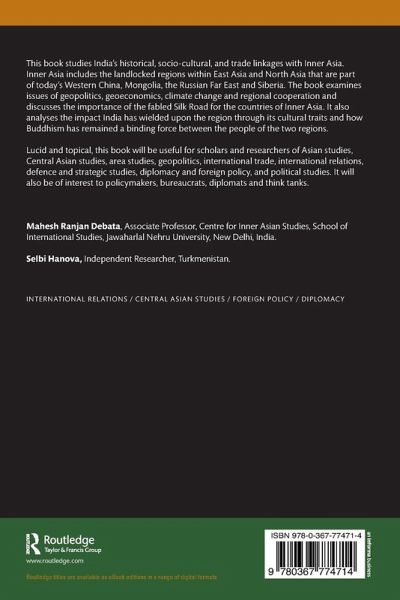 This book studies India's historical, socio-cultural, and trade linkages with Inner Asia. Inner Asia includes the landlocked regions within East Asia and North Asia that are part of today's Western China, Mongolia, the Russian Far East, and Siberia. The book examines issues of geopolitics, geoeconomics, climate change and regional cooperation and discusses the importance of the fabled Silk Road for the countries of Inner Asia. It also analyses the impact India has wielded upon the region through its cultural traits and how Buddhism has remained a binding force between the people of the two regions.
