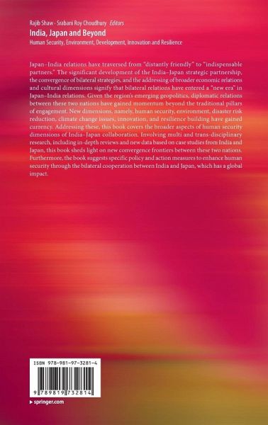 Japan-India relations have traversed from "distantly friendly" to "indispensable partners." The significant development of the India-Japan strategic partnership, the convergence of bilateral strategies, and the addressing of broader economic relations and cultural dimensions signify that bilateral relations have entered a "new era" in Japan-India relations. Given the region's emerging geopolitics, diplomatic relations between these two nations have gained momentum beyond the traditional pillars of engagement. New dimensions, namely, human security, environment, disaster risk reduction, climate change issues, innovation, and resilience building have gained currency. Addressing these, this book covers the broader aspects of human security dimensions of India-Japan collaboration. Involving multi and trans-disciplinary research, including in-depth reviews and new data based on case studies from India and Japan, this book sheds light on new convergence frontiers between these twonations. Furthermore, the book suggests specific policy and action measures to enhance human security through the bilateral cooperation between India and Japan, which has a global impact.