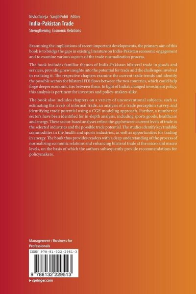 The book includes familiar themes of India-Pakistan bilateral trade in goods and services, providing new insights into the potential for trade and the challenges involved in realizing it. The respective chapters examine the current trade trends and identify the possible sectors for bilateral FDI flows between the two countries, which could help forge deeper economic ties between them. In light of India's changed investment policy, this analysis is pertinent for investors and policy-makers alike.