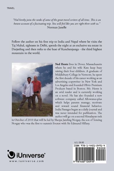 This is a travel journal the author wrote while visiting India for the first time and trekking for 18 days in Nepal and the Himalayas. It begins in Delhi and moves to the Taj Mahal, a tea estate and plantation in Darjeeling, Nepal and ends in Sikkim where the author hikes to Guicha La (16,400 feet) at the base of Kanchenjunga - the third highest mountain in the world. It was primarily intended to be a personal memoir for his friends and family and fellow trekkers but others who are interested in India and trekking in the high Himalayas might enjoy this highly descriptive account of a trip in October of 2008.