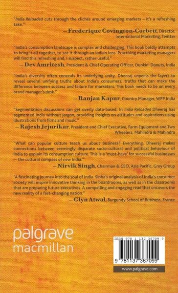 'Dheeraj brings alive a new India, one that wants to live every moment as a spectacle. Contrary to the assumptions, India's mass consumers want the latest in technology and life, and are eager to upgrade to new experiences. To woo this India, brands need to have a swagger themselves. India Reloaded cuts through the clichés around emerging markets it's a refreshing take.'