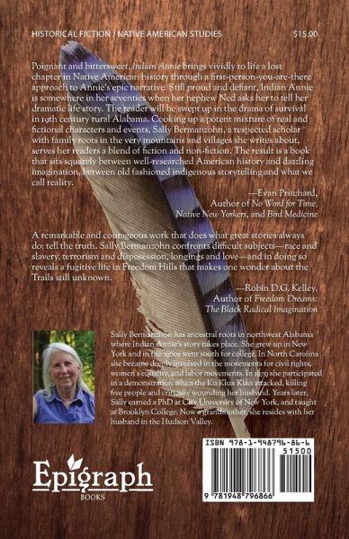 Indian Annie is historical fiction, a life story of a 19th century Indian woman, told in first person. Born into the Chickasaw Nation’s ancestral homeland in the deep South, Annie and her family refused to leave during the Indian Removal of the 1830s. Instead, they hid in their small village in the remote mountains of northwestern Alabama known as Freedom Hills. Annie tells of her village‘s survival against the odds, through war, murder, and starving winters, but reveling in the good times as well. The strength of her extended family is the backbone of Annie’s story. Theirs is a spiritual way of life based on strong connection to the earth, and to the myriad local plants and creatures of Alabama.