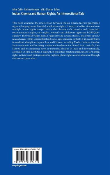 This book examines the intersection between Indian cinema (across geographic regions, languages and formats) and human rights. It analyzes Indian cinema from multiple human rights perspectives, such as freedom of expression and censorship, socio-economic rights, caste rights, women's and children's rights and LGBTQIA+ equality. The book bridges human rights law and cinema studies, and opens up new research areas within sociocultural and socio-legal academic contexts. It also contributes to academic disicplines beyond Law and Cinema, including Media, Cultural, Gender, Socio-economic and Sociology studies and is relevant for Liberal Arts curricula, Law Schools and as a reference book in university libraries in India and internationally, especially in film institutes. Finally, the book offers practical implications for human rights activists and policymakers by exploring how rights can be advanced through cinema and pop culture.