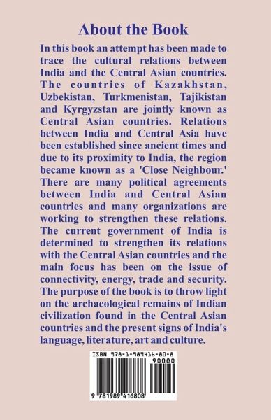 In this book an attempt has been made to trace the cultural relations between India and the Central Asian countries. The countries of Kazakhstan, Uzbekistan, Turkmenistan, Tajikistan and Kyrgyzstan are jointly known as Central Asian countries. Relations between India and Central Asia have been established since ancient times and due to its proximity to India, the region became known as a 'Close Neighbor.' There are many political agreements between India and Central Asian countries and many organizations are working to strengthen these relations. The current government of India is determined to strengthen its relations with the Central Asian countries and the main focus has been on the issue of connectivity, energy, trade and security. The purpose of the book is to throw light on the archaeological remains of Indian civilization found in the Central Asian countries and the present signs of India's language, literature, art and culture.