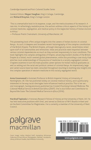"The authors wield an impressive command of the scholarly literature on colonial medicine, Kenyan history, and the Indian diaspora, but their thematic interests rarely stray far from the biographical trajectories and political and economic conditions of Indian doctors. ... Readers interested in colonial Kenya, the Indian diaspora, and of course colonial medicine will find several gems in this study. ... this is an authoritative study that will serve as a valuable reference for a host of overlapping readerships." (James R. Brennan, Journal of the History of Medicine, Vol. 71 (4), October, 2016)