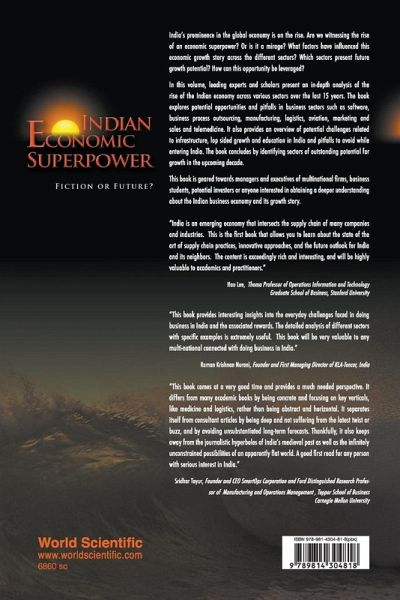 India's prominence in the global economy is on the rise. Are we witnessing the rise of an economic superpower? Or is it a mirage? What factors have influenced this economic growth story across the different sectors? Which sectors present future growth potential? How can this opportunity be leveraged?In this volume, leading experts and scholars present an in-depth analysis of the rise of the Indian economy across various sectors over the last 15 years. The book explores potential opportunities and pitfalls in business sectors such as software, business process outsourcing, manufacturing, logistics, aviation, marketing and sales and telemedicine. It also provides an overview of potential challenges related to infrastructure, lop sided growth and education in India and pitfalls to avoid while entering India. The book concludes by identifying sectors of outstanding potential for growth in the upcoming decade.This book is geared towards managers and executives of multinational firms, business students, potential investors or anyone interested in obtaining a deeper understanding about the Indian business economy and its growth story.