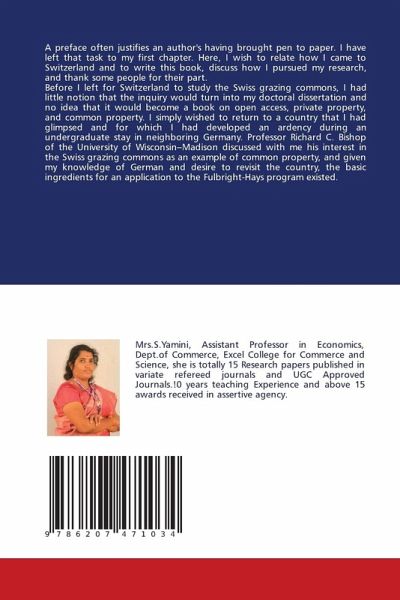 A preface often justifies an author's having brought pen to paper. I have left that task to my first chapter. Here, I wish to relate how I came to Switzerland and to write this book, discuss how I pursued my research, and thank some people for their part.Before I left for Switzerland to study the Swiss grazing commons, I had little notion that the inquiry would turn into my doctoral dissertation and no idea that it would become a book on open access, private property, and common property. I simply wished to return to a country that I had glimpsed and for which I had developed an ardency during an undergraduate stay in neighboring Germany. Professor Richard C. Bishop of the University of Wisconsin-Madison discussed with me his interest in the Swiss grazing commons as an example of common property, and given my knowledge of German and desire to revisit the country, the basic ingredients for an application to the Fulbright-Hays program existed.
