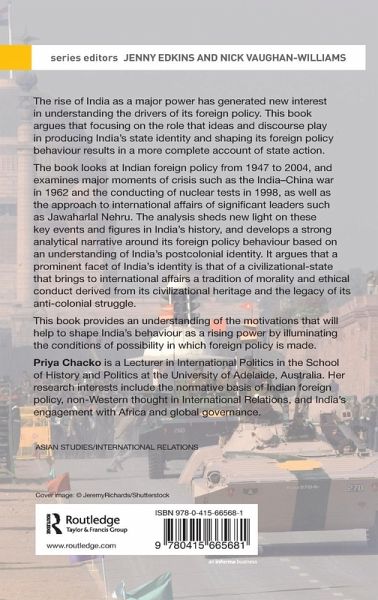 The rise of India as a major power has generated new interest in understanding the drivers of its foreign policy. This book argues that analysing India's foreign and security policies as representational practices which produce India's identity as a postcolonial nation-state helps to illuminate the conditions of possibility in which foreign policy is made. Spanning the period between 1947 and 2004, the book focuses on key moments of crisis, such as the India-China war in 1962 and the nuclear tests of 1972 and 1998, and the approach to international affairs of significant leaders like Jawaharlal Nehru. The analysis sheds new light on these key events and figures and develops a strong analytical narrative around India's foreign policy behaviour, based on an understanding of its postcolonial identity. It is argued that a prominent facet of India's identity is a perception that it is a civilizational-state which brings to international affairs a tradition of morality and ethical conduct derived from its civilizational heritage and the experience of its anti-colonial struggle. This notion of 'civilizational exceptionalism', as well as other narratives of India's civilizational past, such as its vulnerability to invasion and conquest, have shaped the foreign policies of governments of various political hues and continue to influence a rising India.