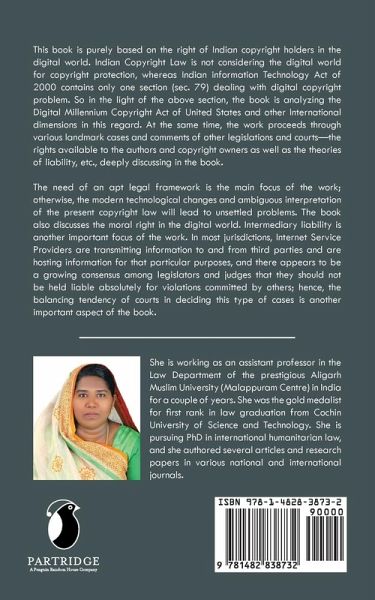 This book is purely based on the right of Indian copyright holders in the digital world. Indian Copyright Law is not considering the digital world for copyright protection, whereas Indian information Technology Act of 2000 contains only one section (sec. 79) dealing with digital copyright problem. So in the light of the above section, the book is analyzing the Digital Millennium Copyright Act of United States and other International dimensions in this regard. At the same time, the work proceeds through various landmark cases and comments of other legislations and courts-the rights available to the authors and copyright owners as well as the theories of liability, etc., deeply discussing in the book. The need of an apt legal framework is the main focus of the work; otherwise, the modern technological changes and ambiguous interpretation of the present copyright law will lead to unsettled problems. The book also discusses the moral right in the digital world. Intermediary liability is another important focus of the work. In most jurisdictions, Internet Service Providers are transmitting information to and from third parties and are hosting information for that particular purposes, and there appears to be a growing consensus among legislators and judges that they should not be held liable absolutely for violations committed by others; hence, the balancing tendency of courts in deciding this type of cases is another important aspect of the book.