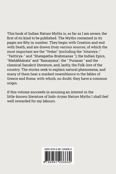 This book of Indian Nature Myths is, so far as I am aware, the first of its kind to be published. The Myths contained in its pages are fifty in number. They begin with Creation and end with Death, and are drawn from various sources, of which the most important are the "Vedas" (including the "Aitareya-," "Taittirya-" and "Shatapatha-Brahmanas "); the Indian Epics, "Mahâbhârata" and "Ramayana"; the " Puranas " and the classical Sanskrit literature, and, lastly, the Folk-lore of the country. The stories seek to explain natural phenomena, and many of them bear a marked resemblance to the fables of Greece and Rome, with which, no doubt, they have a common origin. If this volume succeeds in arousing an interest in the little-known literature of Indo-Aryan Nature Myths I shall feel well rewarded for my labours.