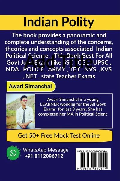 indian political science book for all indian central and stae government exams like ssc exam , upsc exam , nda exam , teacher exams , tet exams , railway exams , banking exams , this is the best indian political science book , best indian poity book under best price , if you looking for a best indian polity book it is the best paperback book for you