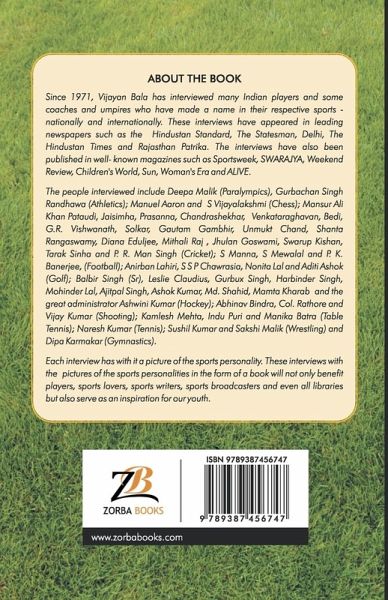 Since 1971, I have interviewed many Indian players and some coaches and umpires who have made a name in their respective sports - nationally and internationally.These interviews have appeared in leading newspapers such as the Hindustan Standard, The Statesman, Delhi, The Hindustan Times and Rajasthan Patrika. The interviews have also been published in well- known magazines such as Sportsweek, SWARAJYA, Weekend Review, Children's World, Sun, Woman's Era and ALIVE. The people interviewed include Deepa Malik (Paralympics), Gurbachan Singh Randhawa ( Athletics ); Manuel Aaron and S Vijayalakshmi ( Chess ); Mansur Ali Khan Pataudi, Jaisimha, Prasanna, Chandrashekhar, Venkataraghavan, Bedi,G.R. Vishwanath, Solkar, Gautam Gambhir, Unmukt Chand, Shanta Rangaswamy, Diana Eduljee, Mithali Raj , Jhulan Goswami, Swarup Kishan and Tarak Sinha ( Cricket ); S Manna, S Mewalal and P K Banerjee, ( Football ); Anirban Lahiri, S S P Chawrasia, Nonita Lal and Aditi Ashok ( Golf ); Balbir Singh Sr, Leslie Claudius, Gurbux Singh, Harbinder Singh, Mohinder Lal, Ajitpal Singh,Ashok Kumar, Md Shahid, Mamta Kharab and the great administrator Ashwini Kumar ( Hockey ); Abhinav Bindra, Col. Rathore and Vijay Kumar ( Shooting ); Kamlesh Mehta, Indu Puri and Manika Batra ( Table Tennis ); Naresh Kumar (Tennis ); Sushil Kumar and Sakshi Malik ( Wrestling ) and Dipa Karmakar (Gymnastics).