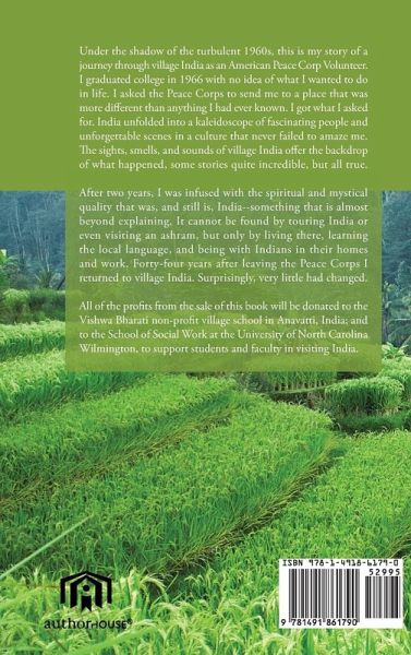 Under the shadow of the turbulent 1960s, this is my story of a journey through village India as an American Peace Corp Volunteer. I graduated college in 1966 with no idea of what I wanted to do in life. I asked the Peace Corps to send me to a place that was more different than anything I had ever known. I got what I asked for. India unfolded into a kaleidoscope of fascinating people and unforgettable scenes in a culture that never failed to amaze me. The sights, smells, and sounds of village India offer the backdrop of what happened, some stories quite incredible, but all true. After two years, I was infused with the spiritual and mystical quality that was, and still is, India--something that is almost beyond explaining. It cannot be found by touring India or even visiting an ashram, but only by living there, learning the local language, and being with Indians in their homes and work. Forty-four years after leaving the Peace Corps I returned to village India. Surprisingly, very little had changed. All of the profits from the sale of this book will be donated to the Vishwa Bharati non-profit village school in Anavatti, India; and to the School of Social Work at the University of North Carolina Wilmington, to support students and faculty in visiting India.