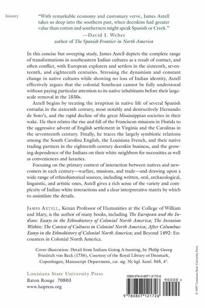 In this concise but sweeping study, James Axtell depicts the complete range of transformations in southeastern Indian cultures as a result of contact, and often conflict, with European explorers and settlers in the sixteenth, seventeenth, and eighteenth centuries. Stressing the dynamism and constant change in native cultures while showing no loss of Indian identity, Axtell effectively argues that the colonial Southeast cannot be fully understood without paying particular attention to its native inhabitants before their large-scale removal in the 1830s. Axtell begins by treating the irruption in native life of several Spanish entradas in the sixteenth century, most notably and destructively Hernando de Soto's, and the rapid decline of the great Mississippian societies in their wake. He then relates the rise and fall of the Franciscan missions in Florida to the aggressive advent of English settlement in Virginia and the Carolinas in the seventeenth century. Finally, he traces the largely symbiotic relations among the South Carolina English, the Louisiana French, and their native trading partners in the eighteenth-century deerskin business, and the growing dependence of the Indians on their white neighbors for necessities as well as conveniences and luxuries. Focusing on the primary context of interaction between natives and newcomers in each century - warfare, missions, and trade - and drawing upon a wide range of ethnohistorical sources, including written, oral, archaeological, linguistic, and artistic ones, Axtell gives a rich sense of the variety and complexity of Indian-white interactions and a clear interpretative matrix by which to assimilate the details.