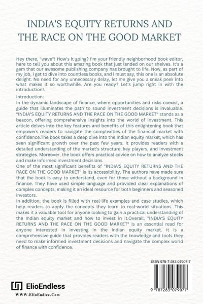 Title: "INDIA'S EQUITY RETURNS AND THE RACE ON THE GOOD MARKET" Introduction: In the dynamic landscape of finance, where opportunities and risks coexist, a guide that illuminates the path to sound investment decisions is invaluable. "INDIA'S EQUITY RETURNS AND THE RACE ON THE GOOD MARKET" stands as a beacon, offering comprehensive insights into the world of investment. This article delves into the key features and benefits of this enlightening book that empowers readers to navigate the complexities of the financial market with confidence. Understanding the Gem: "INDIA'S EQUITY RETURNS AND THE RACE ON THE GOOD MARKET" emerges as a treasure trove of financial wisdom. Penned by experts who have meticulously studied countless books, this guide is a testament to their dedication to demystify investment intricacies. Key Features:Holistic Financial Literacy: The book transcends jargon and complexities, ensuring readers grasp financial concepts effortlessly, fostering a solid foundation for investment knowledge. Strategic Investment Approaches: With a plethora of investment strategies, readers are equipped to turn risks into calculated opportunities, steering their financial journey effectively. In-Depth Analysis: The book provides readers with insights into empirical research and analyses, unraveling the dynamics that underpin asset pricing models, enriching their understanding of equity returns. Factors Driving Returns: Delving into diverse factors influencing equity returns, the book explores market trends, risk assessment, and sentiment analysis, offering a comprehensive view. Practical Insights: Bridging theory and application, readers gain actionable insights to align their investments with financial goals, transcending theory to real-world execution. Localized Expertise: The book includes in-depth studies pertinent to the Indian market, delivering tailored insights into local economic intricacies for informed investment choices. Benefits of the Book:Empowered Financial Literacy: "INDIA'S EQUITY RETURNS AND THE RACE ON THE GOOD MARKET" equips readers with knowledge, ensuring they navigate investment intricacies confidently. Informed Decision-Making: Backed by empirical research, readers make informed investment choices, mitigating risks and optimizing returns for financial growth. Tailored Insights: Tailoring insights to the Indian context, the book helps readers leverage local economic dynamics, offering a nuanced perspective on investment opportunities. Strategic Investment: Armed with data-driven strategies, readers optimize investment portfolios, translating aspirations into tangible financial success. Conclusion: "INDIA'S EQUITY RETURNS AND THE RACE ON THE GOOD MARKET" is an indispensable guide for those navigating the investment landscape. Its wealth of knowledge, strategic insights, and localized expertise empower readers to conquer the challenges of finance. Unlock the door to well-informed investment decisions by embracing the wisdom shared in this remarkable book. Embark on a journey toward financial empowerment and growth in the ever-evolving world of investment.