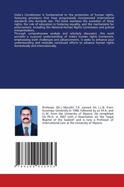 India's Constitution is fundamental to the protection of human rights, featuring provisions that have progressively incorporated international standards into domestic law. This book examines the evolution of these rights, the role of education in fostering equality, and the mechanisms for enforcement, including the National Human Rights Commission and judicial interpretations.Through comprehensive analysis and scholarly discussion, this work provides a nuanced understanding of India's human rights framework, emphasizing both challenges and advancements. It seeks to enhance your understanding and motivate continued efforts to advance human rights domestically and internationally.