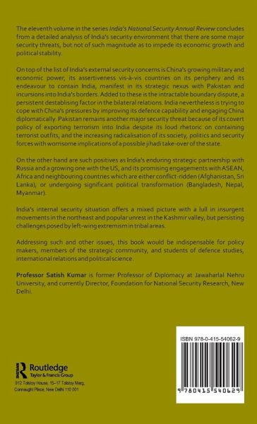 India's National Security Annual Review 2011 comprehensively analyses India's engagement with major world powers in a complex global security environment and its response to domestic security challenges such as insurgent movements in the northeastern and tribal areas and unrest in Jammu and Kashmir.