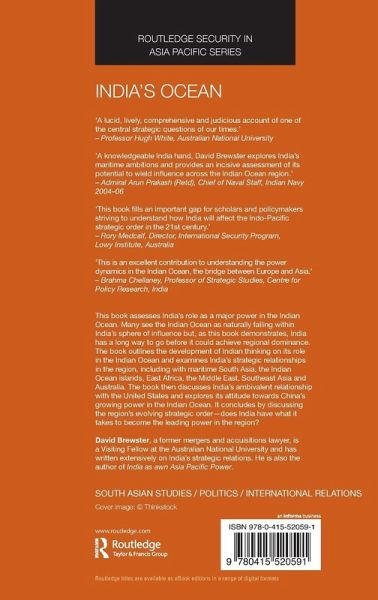 This book assesses India's role as a major power in the Indian Ocean. Many see the Indian Ocean as naturally falling within India's sphere of influence but, as this book demonstrates, India has a long way to go before it could achieve regional dominance. The book outlines the development of Indian thinking on its role in the Indian Ocean and examines India's strategic relationships in the region, including with maritime South Asia, the Indian Ocean islands, East Africa, the Middle East, Southeast Asia and Australia. The book then discusses India's ambivalent relationship with the United States and explores its attitude towards China's growing power in the Indian Ocean. It concludes by discussing the region's evolving strategic order - does India have what it takes to become the leading power in the region?