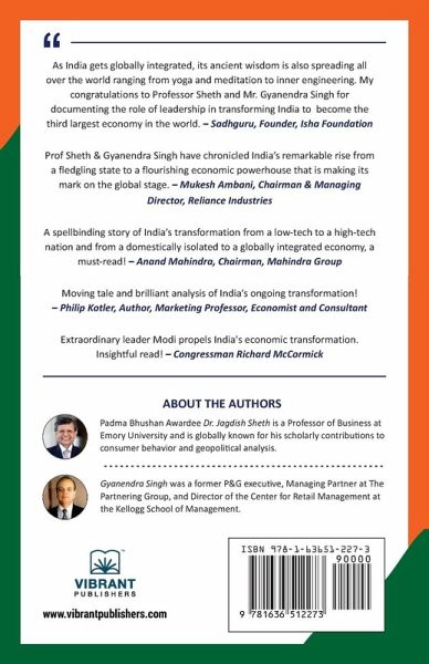 India's Road to Transformation: Why Leadership Matters describes the critical role of political leadership in India which began post-independence until this present age. Documenting Prime Minister Narendra Modi's pragmatic leadership to transform India into a superpower! Since India's independence from Britain in 1947, it has been governed by 14 prime ministers, some of whom contributed immensely to its socio-economic development than others. The book shows how using Mahatma Gandhi's unifying philosophy to rally all Indian people together, great prime ministers such as Jawaharlal Nehru, Indira Gandhi, Atal Bihari Vajpayee, Manmohan Singh, and now Narendra Modi have channeled their energy, power, and political influence to significantly improve the livelihood of the Indian people through their economic and social transformative agendas. India's Road to Transformation: Why Leadership Matters is not your typical history book about India; it is a well-researched and neatly documented role of leadership for India's development, joining the historical dots of socio-economic successes achieved by each predominant Indian government since 1947. By reading this well-prepared book, you will discover: * The historical values and structures of India and how they changed over time due to varying political processes and internal strife. * India's diversification of its economic activities from an agrarian community to a merchant/trade society and now to a technologically advanced, modern country. * The transformative actions/steps taken by some prominent Indian leaders, from Nehru to Modi, learning how their timely and effective socio-economic programs saved India from collapsing. * Some comparative economic yardsticks between India, China, Japan, and the Southeast Asian nations. * Important suggestions from the authors of this book about how India can sustain its current growth rate and eventually become a superpower such as the US and China.