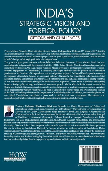 Prime Minister Narendra Modi reiterated (Second Raisina Dialogue, New Delhi, on 17th January 2017) that the civilisational legacy of 'Realism, Co-existence, Cooperation and Partnership' moulded India's strategic vision. The above statement reflects India's ambitious project to attain great power status, which has been a constant element in India's foreign and strategic policy since its independence. The quest for great power status is a shared belief and behaviour. Moreover, Prime Minister Modi has been continuing, at a fast pace, with the reforms initiated in 1991 by Prime Minister Narasimha Rao and pursued by his immediate predecessors. We can notice in Narendra Modi's approach of 'strategic interconnectedness' or 'multi-vectored engagement' or 'panchamrit', a continuity that aligns perfectly with the policies of his immediate predecessors. At the dawn of independence, the non-alignment approach facilitated liberal capitalist economic development with socialist flavours on an upward trajectory. Narasimha Rao rehabilitated India into the orbit of neoliberal political and financial architecture. Modi's objective is to take India into the league of leading countries in the multipolar world order through his Multi-vectored Alignment. There exists a symbiotic relationship between foreign policy strategy and domestic economic growth. Modi's Make in India project, Atmanirbhar Bharat and similar initiatives constructed on multi-vectored alignment or strategic interconnectedness have given India unprecedented visibility worldwide. This book is a collection of essays penned by a few established scholars in the field, and budding scholars under the guidance of established scholars. In addition, one retired diplomat and one retired Vice-Admiral contributed a piece each, rooted in their own experiences. The attempt is to comprehensively analyse India's strategic culture, doctrine, and foreign policy behaviour.