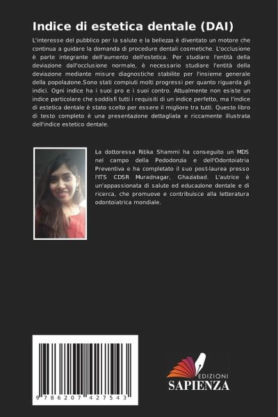 L'interesse del pubblico per la salute e la bellezza è diventato un motore che continua a guidare la domanda di procedure dentali cosmetiche. L'occlusione è parte integrante dell'aumento dell'estetica. Per studiare l'entità della deviazione dall'occlusione normale, è necessario studiare l'entità della deviazione mediante misure diagnostiche stabilite per l'insieme generale della popolazione.Sono stati compiuti molti progressi per quanto riguarda gli indici. Ogni indice ha i suoi pro e i suoi contro. Attualmente non esiste un indice particolare che soddisfi tutti i requisiti di un indice perfetto, ma l'indice di estetica dentale è stato scelto per essere il migliore tra tutti. Questo libro di testo completo è una presentazione dettagliata e riccamente illustrata dell'indice estetico dentale.