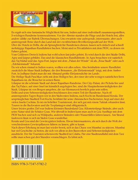 Es ergab sich eine fantastische Möglichkeit für uns, Indien auf einer individuell zusammengestellten, 5-wöchigen Rundreise kennenzulernen. Vor der Abreise standen die Flüge und die Hotels fest, alles andere zählte zur Rubrik Überraschungen. Uns erwartete eine aufregende, interessante, aber auch anstrengende Reise durch das Land mit der zweithöchsten Bevölkerungszahl auf der Welt.Über die Hotels in Delhi, die als Sprungbrett für Rundreisen dienen, lassen sich einfach und schnell mehrtägige Rajasthan-Rundfahrten buchen. Meist sind es Privatfahrten mit dem PKW, zu denen ein Fahrer gehört. Vom Goldenen Dreieck Indiens hat wohl schon fast jeder gehört. Es wird durch die drei Städte Delhi, Agra und Jaipur gebildet. Das sind die klassischen Rundfahrtorte. In Agra besuchten wir natürlich das Taj Mahal und das Agra-Fort. Jaipur mit dem "Palast der Winde" ist als "Rosa Stadt" oder auch "Edelsteinstadt" bekannt. Da wir schon einmal in Indien waren, wollten wir alles sehen. Also beinhaltete unsere Rundfahrt zusätzlich die blaue Stadt Jodhpur, die den Beinamen "die Elefantenstadt" trägt, mit dem Amber Fort. In Jodhpur findet man die mit Abstand größte Elefantendichte im Lande. Die Heilige Stadt Puschkar zieht mit dem Heiligen See, der einer der sehr wenigen natürlichen Seen Rajasthans ist, die Besucher in seinen Bann. Udaipur ist die schönste Stadt auf dieser Rajasthan-Rundreise. Der City-Palast, der Pichola-See und das Taj Palace, auf einer Insel im künstlich angelegten See, sind die Hauptsehenswürdigkeiten der Stadt. Udaipur ist von Bergen umgeben, die zur Monsunzeit herrlich grün sein sollen. Delhi und seine Sehenswürdigkeiten beschlossen den ersten Teil der Rundreise. Nach elf anstrengenden Tagen flogen wir in den Südwesten Indiens, nach Kochi im Bundesland Kerala. Der ursprünglichste Stadtteil Fort Kochi, berühmt für seine chinesischen Fischernetze, liegt auf einer der vielen Inseln Cochins. Es ist ein beliebter Touristenort, der sich gut mit einem Tuktuk erkunden lässt. Touren in die Backwaters und die Teeplantagen sind obligatorisch.Unser letztes großes Ziel war Indiens kleinstes Bundesland Goa. Kilometerlange Strände, aber auch seine Natur sind die Schätze Goas. Wie überall in Indien kann man auch in Goa Ausflüge mit dem PKW buchen und sich zu Wildparks, anderen Stränden oder Wasserfällen fahren lassen. Am Strand faulenzen lässt es sich im Süden Goas wunderbar.Kerala und Goa sind die Gewürzgärten Indiens. Etwas Interessanteres, als sich durch die Welt der verschiedensten Gewürzpflanzen führen lassen, gibt es kaum.Nach dieser Erholung ist man fast wieder bereit, sich an das Chaos von Mumbai zu stürzen. Mumbai hat viel Geschichte zu bieten, die sich vor allem in den den Bauwerken und Sehenswürdigkeiten ausdrückt. Der für Touristen sehenswerte Stadtteil is Colaba. Für eine Stadtrundfahrt mit dem Taxi sollte man schon gut drei Stunden veranschlagen. Es lohnt sich.