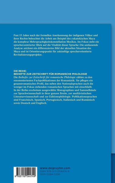 Die Studie ermöglicht durch eine Methodenkombination eine umfassende Gesamtschau auf objektive und subjektive Vitalitätsfaktoren, wobei unter Berücksichtigung diasystematischer Parameter subjektive metasprachliche Äußerungen von Maya- und Nicht-Mayasprechern in vier unterschiedlichen Untersuchungsorten auf der yukatekischen Halbinsel analysiert werden.